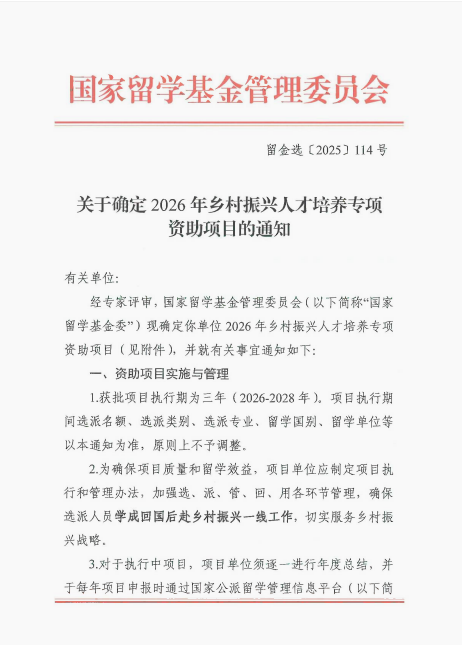 该项目隶属于乡村振兴人才培养专项,新一轮执行有效期为2026至2028年,目前已平稳执行三年。项目构建了层次分明、体系完善的国际化人才培养布局:每年将选派1名硕士研究生、12名联合培养硕士研究生及1名访问学者,赴波兰波兹南生命科学大学、匈牙利农业与生命科学大学、意大利马尔凯理工大学、意大利都灵大学等海外高水平院校深造。此举既为选派人员搭建优质学术资源与实践平台、研习国际前沿理念与技术,又能助力学院从学位教育到学术交流的全维度人才培育覆盖,为服务国内乡村规划与振兴事业提供有力支撑。